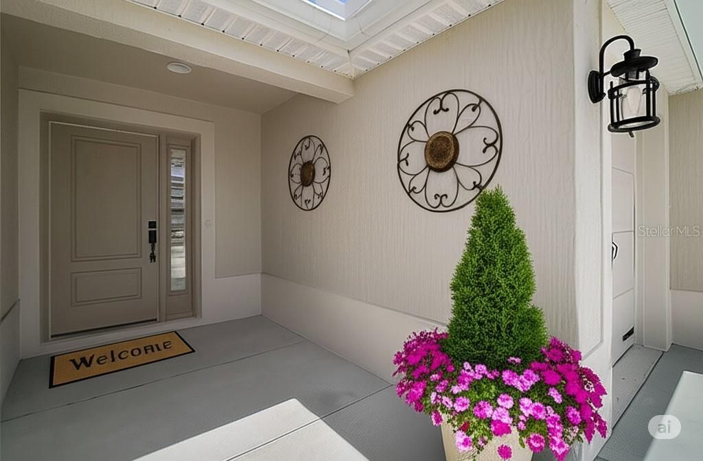 One or more photo(s) has been virtually staged. ENCLOSED LANAI W/ MINI-SPLIT CORNER LOT TILE AND PLANTATION SHUTTERS THROUGHOUT PEGASUS WATER SYSTEM SURGE PROTECTOR GOLF CART GARAGE Welcome to 1645 McLucas Ln-an elegantly upgraded 2023 Mockingbird Designer model nestled in Village of Lake Denham. This 3-bedroom, 2-bath, 1,954 sq ft home sits proudly on a beautifully landscaped corner lot and combines open-concept luxury with everyday convenience.As you enter, tile flooring leads you through an airy split floor plan with knockdown ceilings and plantation shutters throughout. The gourmet kitchen impresses with gleaming quartz countertops, stainless steel appliances, generous cabinetry, and a casual eat-in dining nook perfect for morning coffee. The heart of the home flows seamlessly into a spacious living room ideal for entertaining or relaxing. The primary suite is a private retreat, showcasing a tray ceiling, dual walk-in closets, and a luxurious en-suite bath with Roman-style tiled shower, dual quartz vanities, and a private commode. Two guest bedrooms are located on the opposite side of the home, each with built-in closets, ceiling fans, and easy access to a full guest bathroom, tub/shower, and quartz vanity. Step into the beautiful 12'x29' enclosed lanai-fully climate-controlled with its own mini-split HVAC unit and finished in sleek epoxy flooring. Ideal for year-round enjoyment!Additional upgrades include a two-car garage plus a separate golf cart garage, Pegasus water system, Eaton surge protector, and whole-house gutters. This home offers a true Florida lifestyle in a golf cart community close to Sawgrass Grove, the Clifton Cove Putting Course, Southern Oaks Championship Golf, and the future Eastport town center.